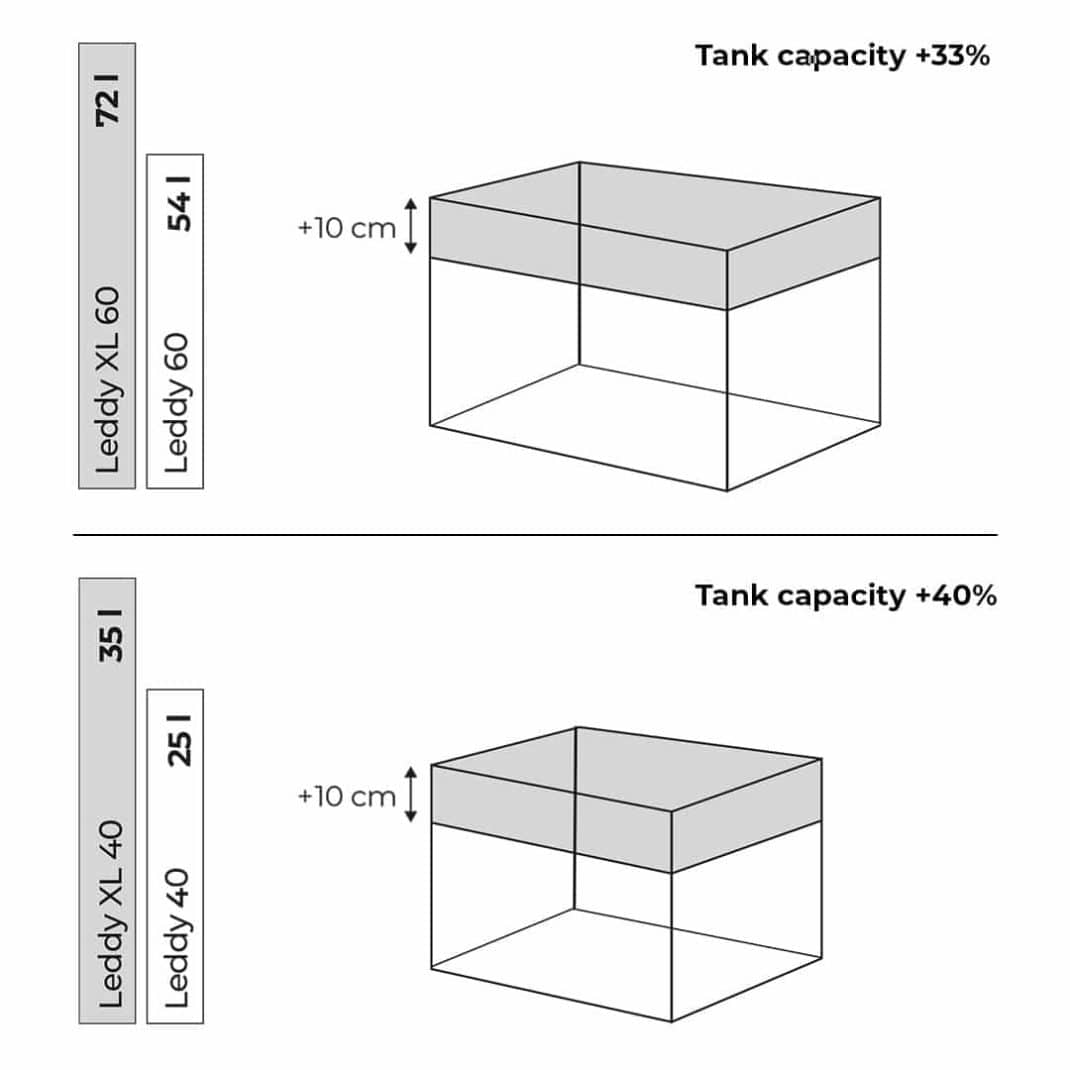 Both the Leddy 40XL and Leddy 60XL come complete with filtration, heating, and energy-efficient Day & Night LED lighting, allowing you to create a stable and natural environment for your aquatic life straight out of the box.