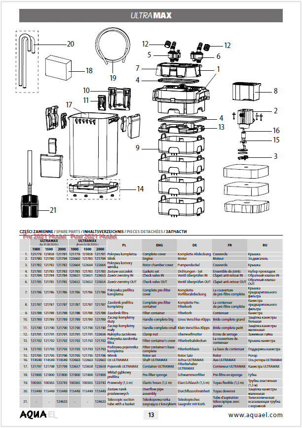 Ensure you select the correct Check Valve In & Out for your Aquael Ultramax Canister Filter, as Pre-2021 and Post-2021 models require different parts.