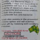 Pond and Aquarium Clear Blocks will clear water and Bacterial Algae in Approximately 7 days and depending on water hardness will last 3 to 4 weeks. The majority of aquarium algae are actually bacteria and ammonia created, result this product non herbicidal but anti-bacterial.