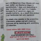 Independent Store Brand Pond and Aquarium Clear Blocks will clear Green Water and Bacterial Algae in Approximately 7 Days and depending on water hardness will last 3 to 4 weeks. The Majority of aquarium algae are actually bacteria, as a result this product is not herbicidal but anti-bacterial. This block also assists in the prevention of Ammonia Spikes and will stabilize Aquarium PH by resisting with acidifying PH Reduction This product comes in 4 Sizes – RED 25gm – 1 Block treats 10-100 Litres BLUE 25gm – 1 Block Treats 100-800 Litres GREEN 25gm – 1 Block Treats 500-1500 Litres LARGE GREEN 65gm – 1 Block Treats 1000-3500 Litres