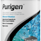 Seachem Purigen is a high-capacity synthetic filtration resin that removes organic waste from aquarium water, preventing ammonia, nitrite, and nitrate buildup while improving water clarity. It is reusable, with a dosage of 250 mL for every 1,000 liters of water, and can be regenerated using a bleach solution when saturated. Boxes of 12